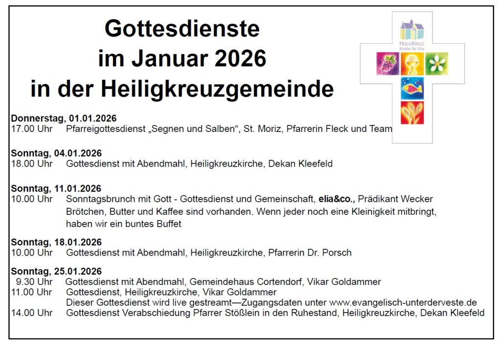 Gottesdienste im Januar 2026