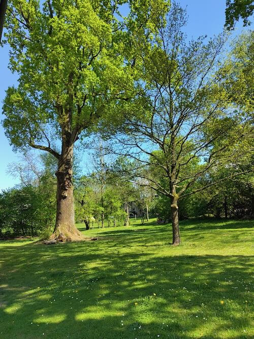 Die Gartenanlage ist barrierefrei zu erreichen, in die Kirche sind lediglich zwei Stufen zu überwinden.