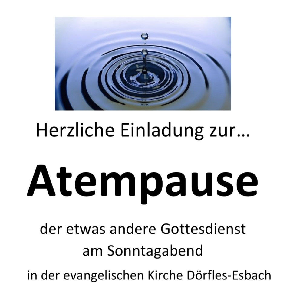 Der Atempause-Gottesdienst findet jeweils am letzten Sonntag im Monat um 18 Uhr in der Kirche "Zum Guten Hirten" in Dörfles-Esbach statt.